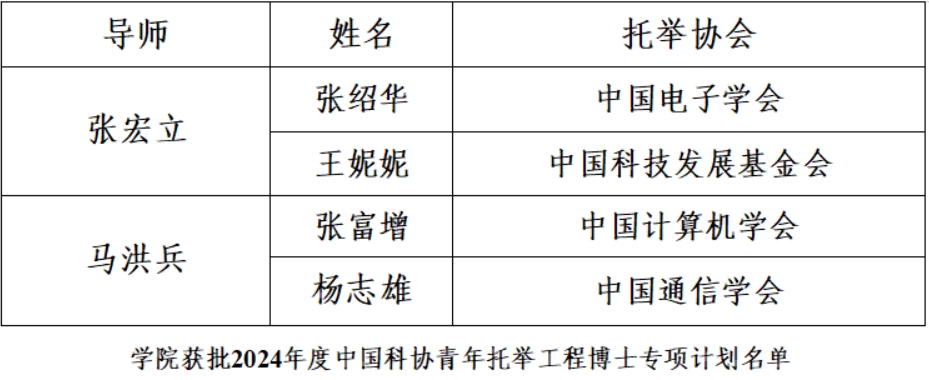 喜报 | porn87 张宏立教授课题组张绍华和王妮妮、马洪兵教授课题组杨志雄和张富增四名博士获批2024年度中国科协青年托举工程博士专项计划